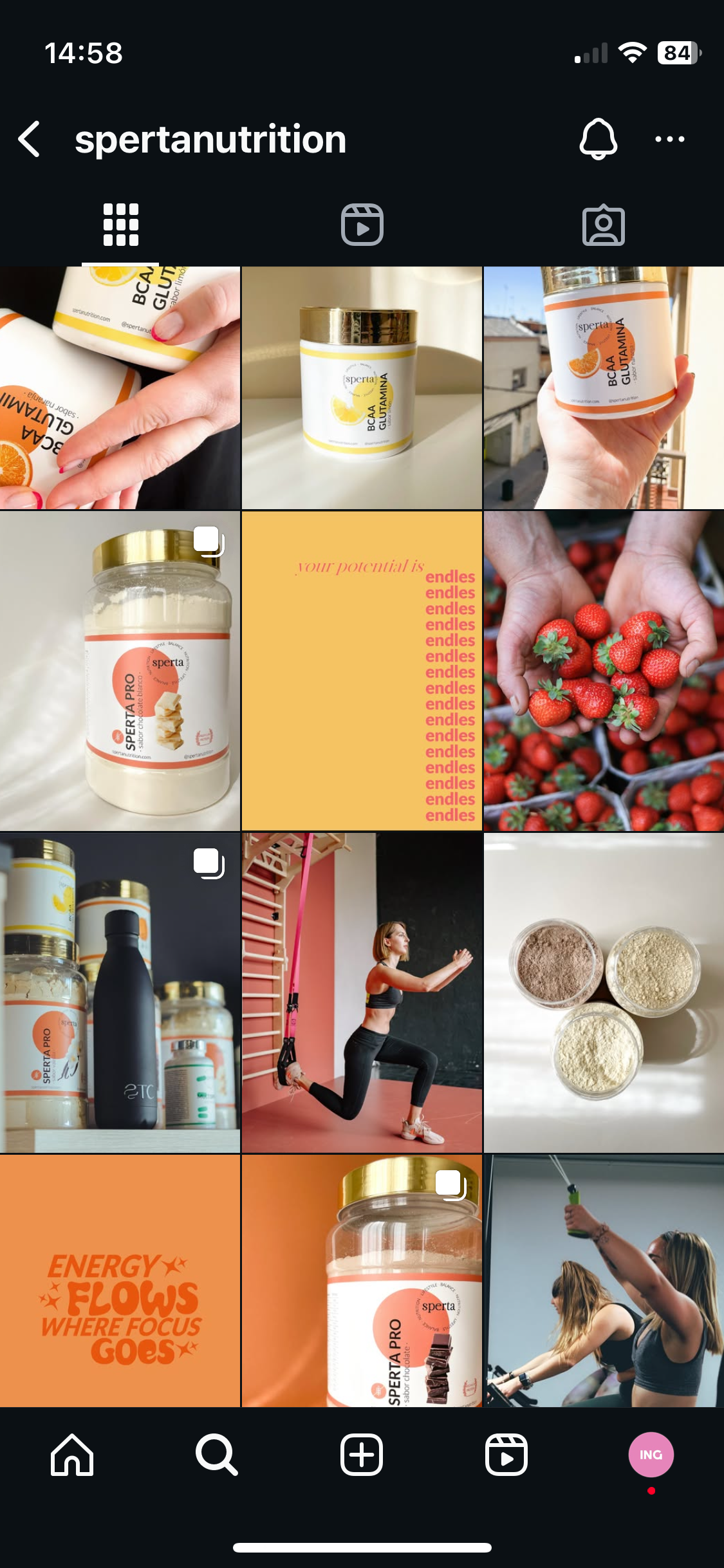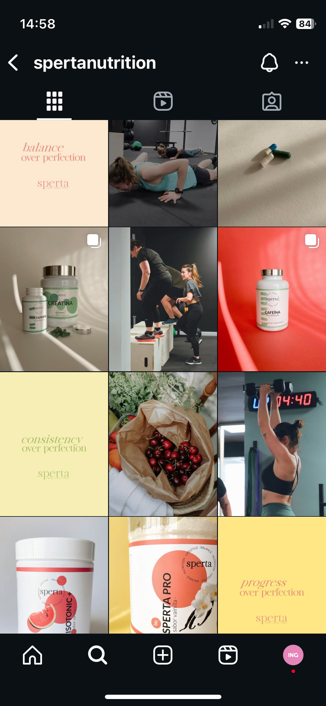 Gestión de redes sociales de la marca de suplementacio Sperta Nutrition. Creación de la estrategia de instagram, planificación, diseño, creación de contenido y copys